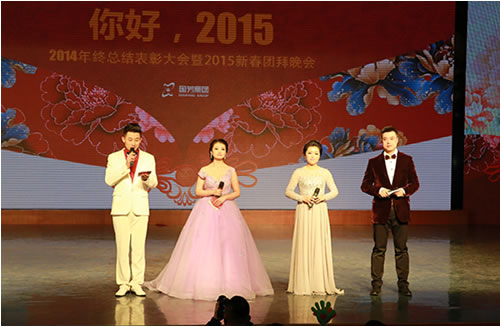 2015年2月9日晚,在蘭州37中(蘭州女子專業(yè)中等專科學(xué)校)5樓藝術(shù)廳內(nèi),國芳集團(tuán)“你好,2015”2014年終總結(jié)表彰大會暨2015年新年盛典溫馨開演。恰逢國芳集團(tuán)成立十五周年,晚會現(xiàn)場充滿了溫馨、喜慶和感動(dòng)。晚會延用了去年的大型LED顯示屏、多組VCR、微信平臺等廣受好評的元素,并創(chuàng)新的融入了中華名族傳統(tǒng)的禮儀文化,漢唐古典舞的壯觀優(yōu)美,員工孩子們《弟子規(guī)》的可愛表演,都在為晚會添加了精彩度的同時(shí),將傳承禮儀所需要的高尚美德這一思想深入的傳達(dá)到每一位員工的心中。員工們精心準(zhǔn)備的節(jié)目一個(gè)比一個(gè)精彩,極具藝術(shù)表現(xiàn)力和觀賞性,董事長也被熱烈的氣氛所感染,親自上臺演唱了兩首歌曲,把晚會推向了高潮。最后,國芳集團(tuán)年終晚會在祥和熱烈的氣氛中落下了帷幕。讓我們共同期待來年的精彩!