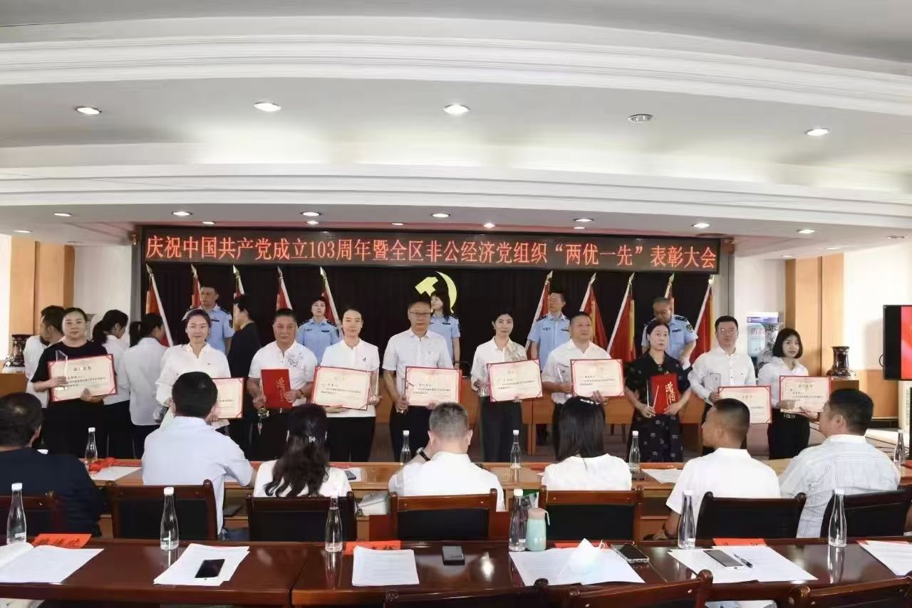 2024 年7月9日上午,“中共蘭州市城關區(qū)非公有制經(jīng)濟組織委員會紀念建黨 103 周年暨兩優(yōu)一先表彰大會”在城關區(qū)市場監(jiān)督管理局十樓隆重召開。